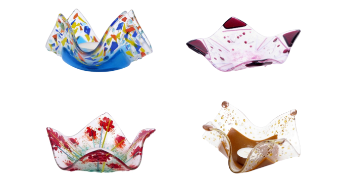 My new handkerchief tealight designs are such fun to make. Or, if you prefer, design a piece that only requires one firing and produce a pretty little dish instead. Alternatively, you may like the look of my abstract tealight holders. These are bigger and heavier but equally as stunning with the abstract glass and coloured beads. The choice is yours!